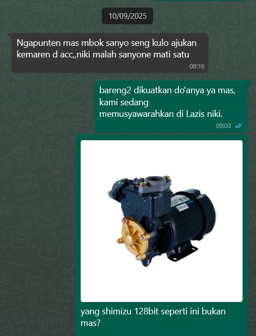Tepat sepekan setelah update kondisi pompa air yang mati di sumberan, Allah hadirkan rezeki berupa donasi pompa air 2 sekaligus.